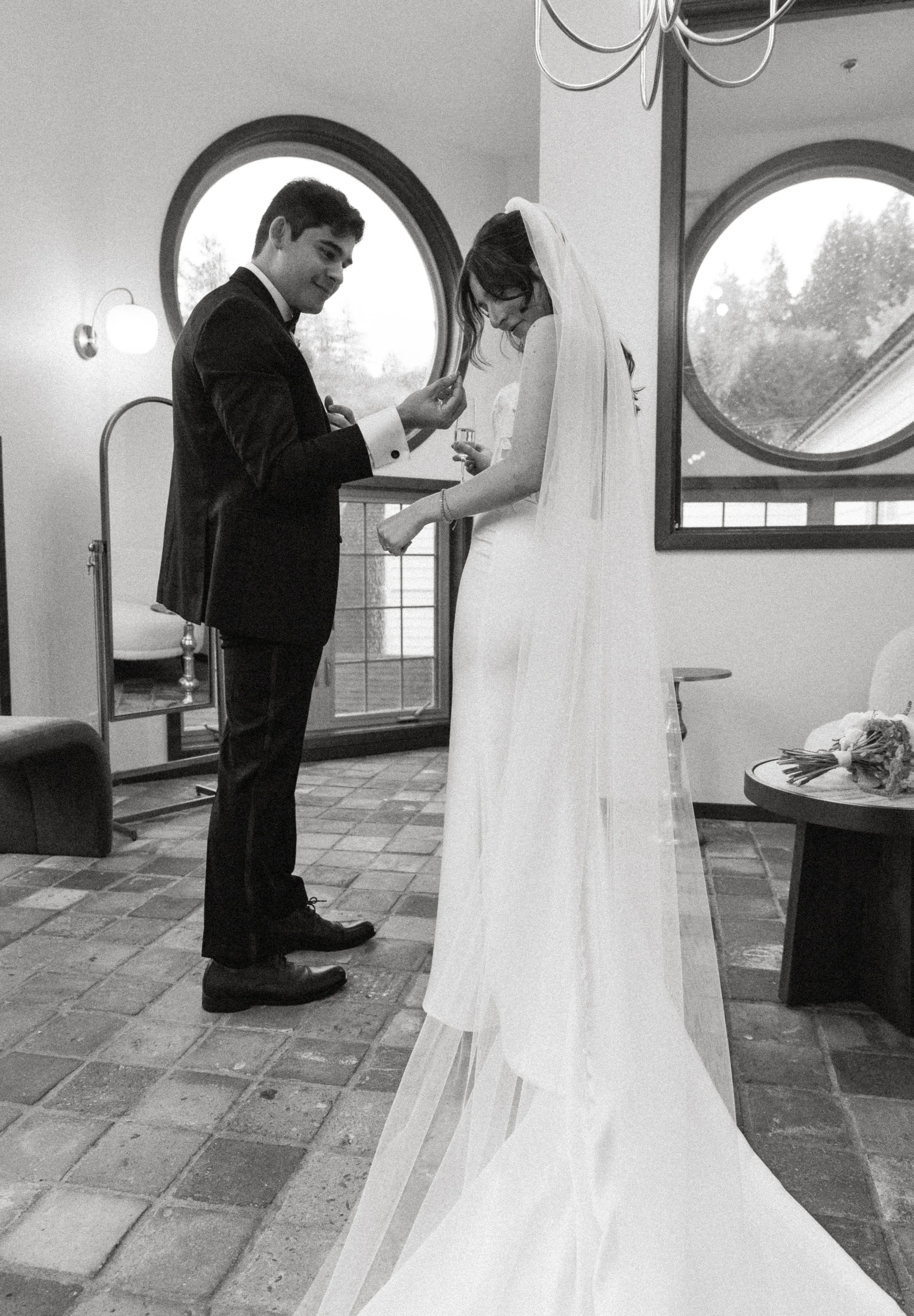 The day was beautifully designed with fall in mind. Warm seasonal tones paired effortlessly with the clean, modern aesthetic of Columbia Collective, creating a romantic and elevated atmosphere from start to finish. The venue’s natural light and thoughtfully designed spaces made it an ideal location for wedding portraits and candid moments alike, especially for couples planning a luxury wedding in the Seattle or Woodinville area.