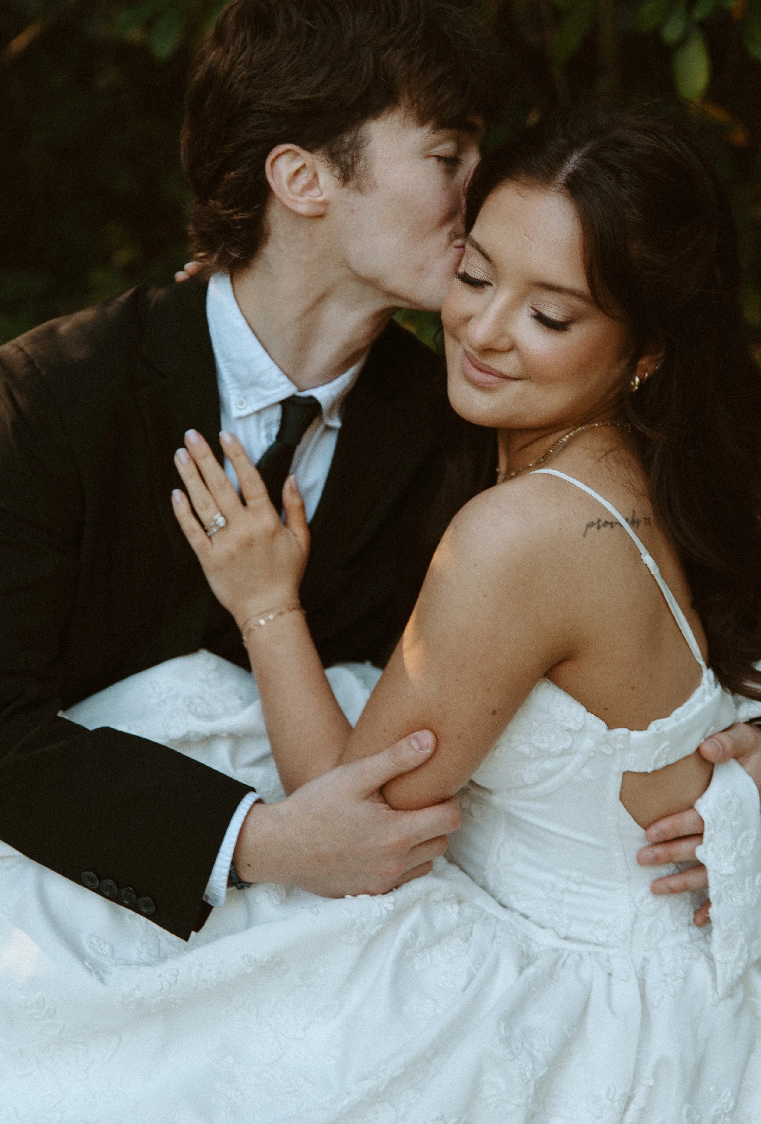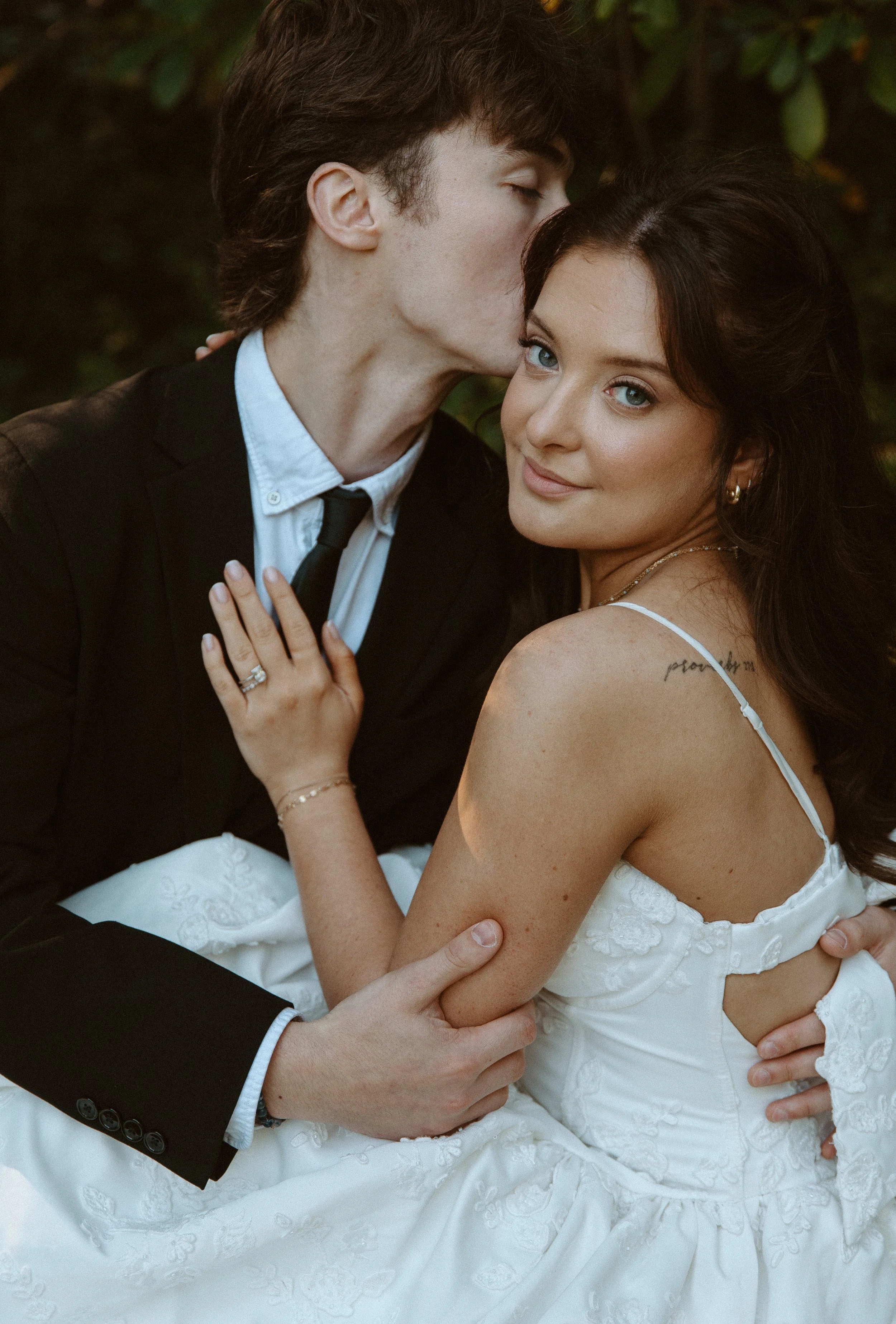 October light at Lakewold Gardens is unmatched. Golden hour wrapped the bride in a soft, glowing warmth that highlighted the textures of her gown, the crisp white roses, and the surrounding fall foliage. Every corner of the venue felt cinematic and full of depth.