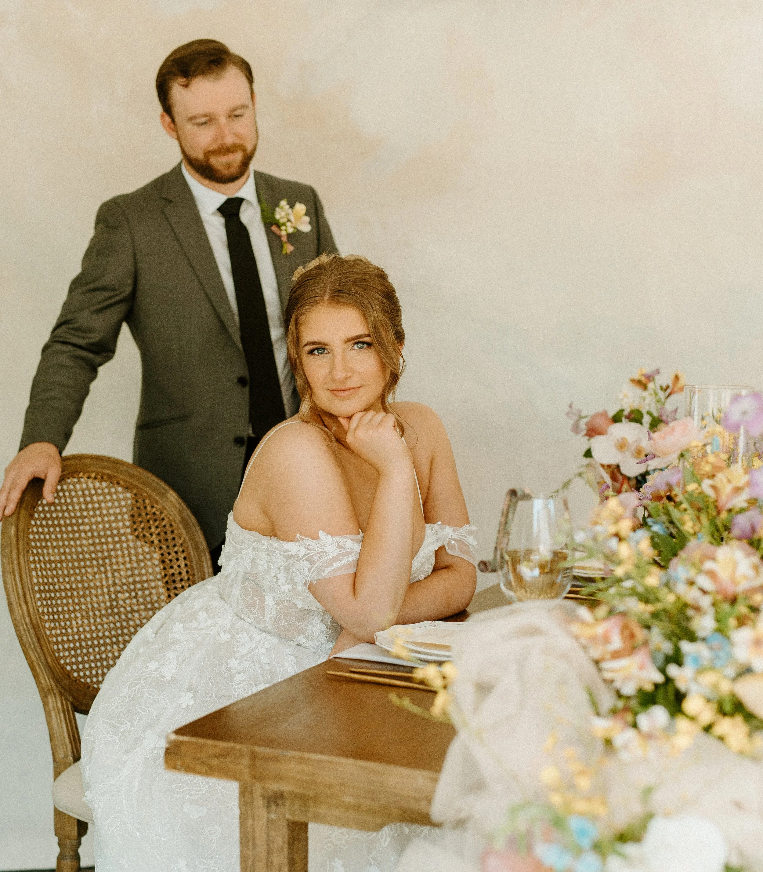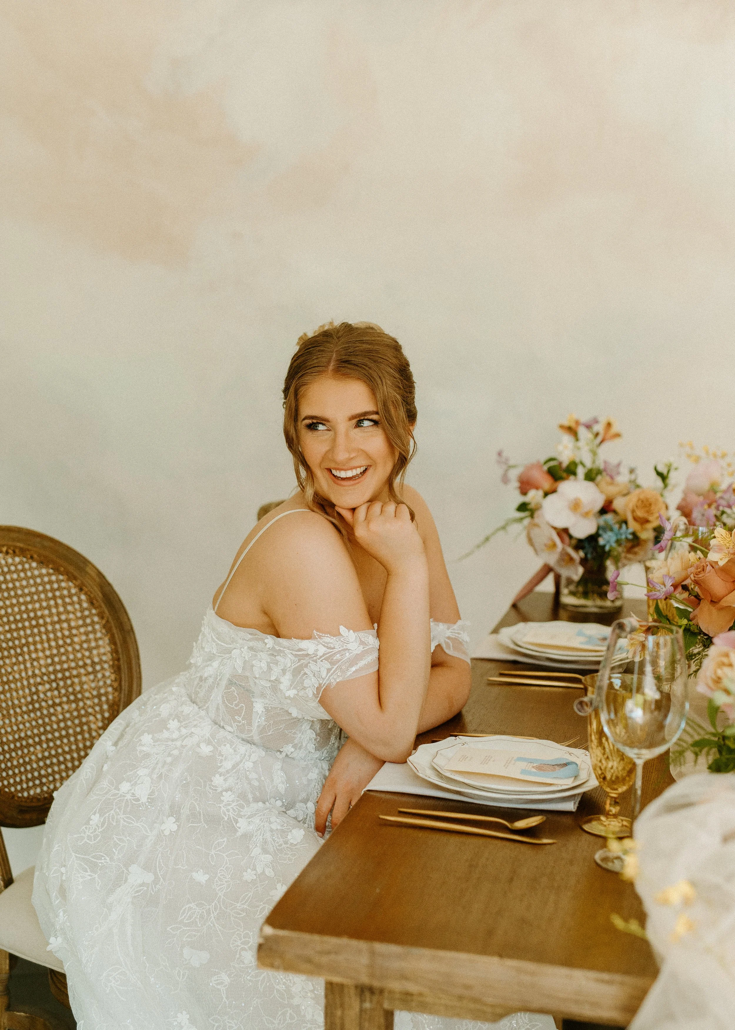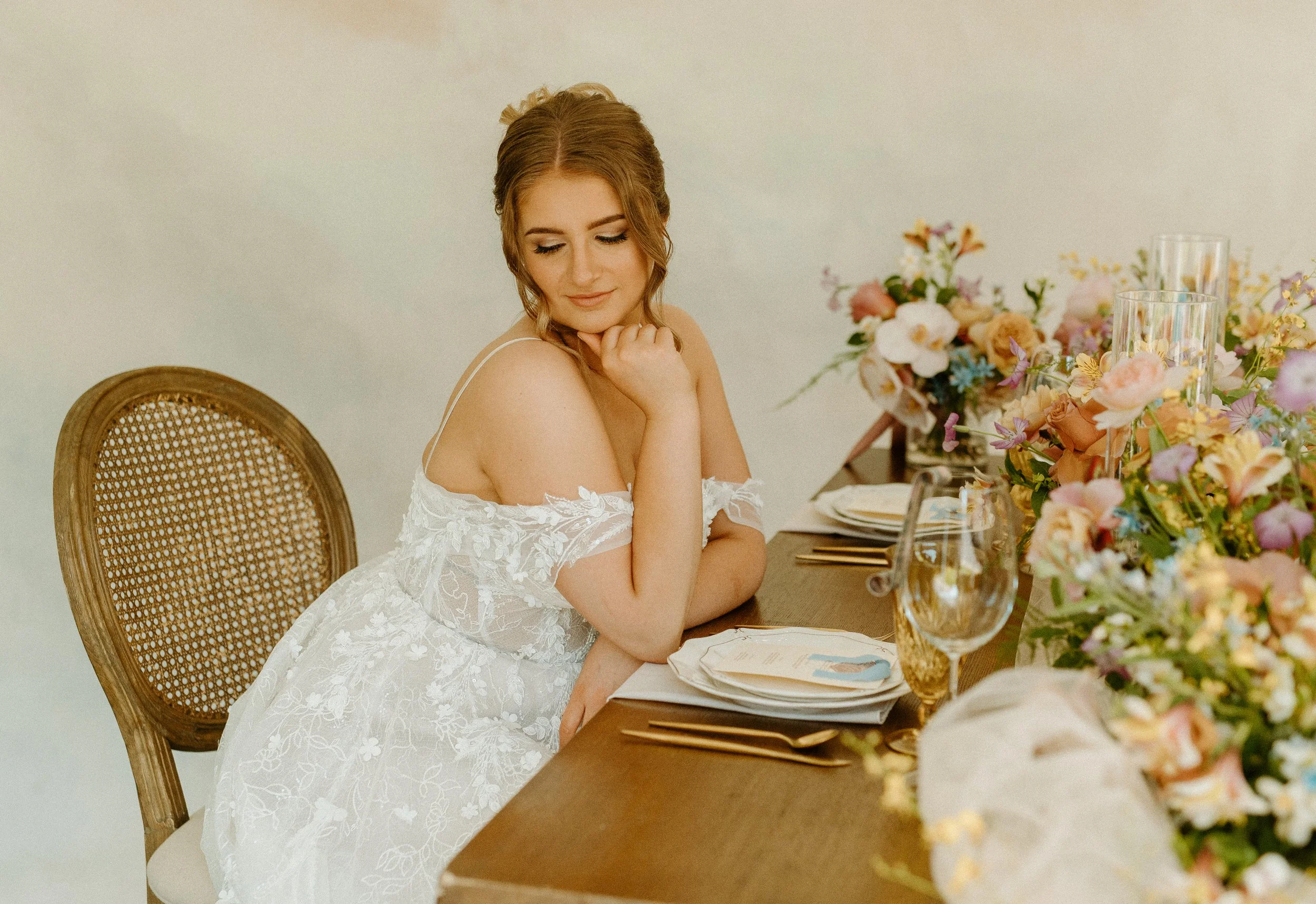 This shoot was all about creating a space that felt romantic, effortless, and full of intention. The kind of day where every detail flows together, from the florals to the textures to the way the light wraps around each moment.