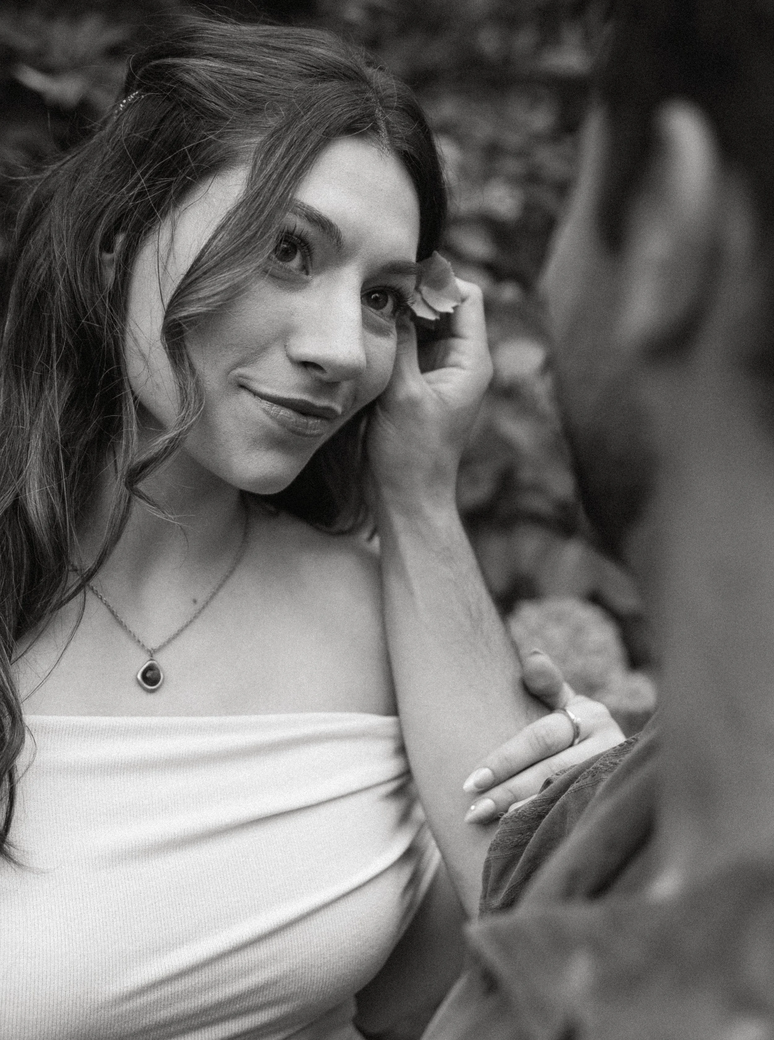 These two were the sweetest souls and shared that they don’t often get photos taken, which made this session even more meaningful. It’s always such an honor to create a space where couples can feel comfortable, relaxed, and fully themselves because that’s where the most genuine moments happen. From the gentle light filtering through the trees to the soft, in-between moments, this session felt effortlessly beautiful in every way.